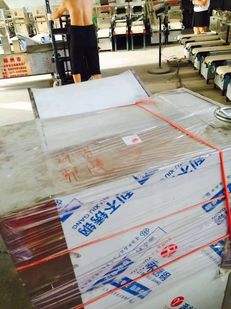 許昌呂先生經(jīng)營一家小型面食食品加工廠,經(jīng)營有燴面批發(fā)生意。每天做30袋左右,由于使用的是老款的單輥單刀的設(shè)備,效率已經(jīng)跟不上,每天花費(fèi)的時間太長。呂先生準(zhǔn)備更換新型設(shè)備,他并沒有選擇許昌當(dāng)?shù)氐臓Z面機(jī)廠家,在網(wǎng)上聯(lián)系到一品鮮后,經(jīng)過多次的溝通,在7月25日定購全套HMj-5型燴面機(jī)(雙輥三刀,自動刷油,自動處理廢料,帶電腦控速。每小時產(chǎn)量12-14袋左右,用此設(shè)備每天用兩三個小時就可以完成呂先生的生產(chǎn)目標(biāo)。)當(dāng)天定購設(shè)備,下午就在廠區(qū)現(xiàn)場調(diào)試設(shè)備。車間師傅也詳細(xì)的給呂先生講解了使用保養(yǎng)注意事項。當(dāng)天下午就通過物流發(fā)往呂先生所在地。 在此希望一品鮮設(shè)備能幫助呂先生更快更好的完成生產(chǎn)任務(wù),節(jié)省時間,節(jié)省人工,盈利更多?。ń?jīng)過后期溝通,呂先生嫌當(dāng)?shù)氐臓Z面機(jī)廠家的設(shè)備笨重,不好用。)