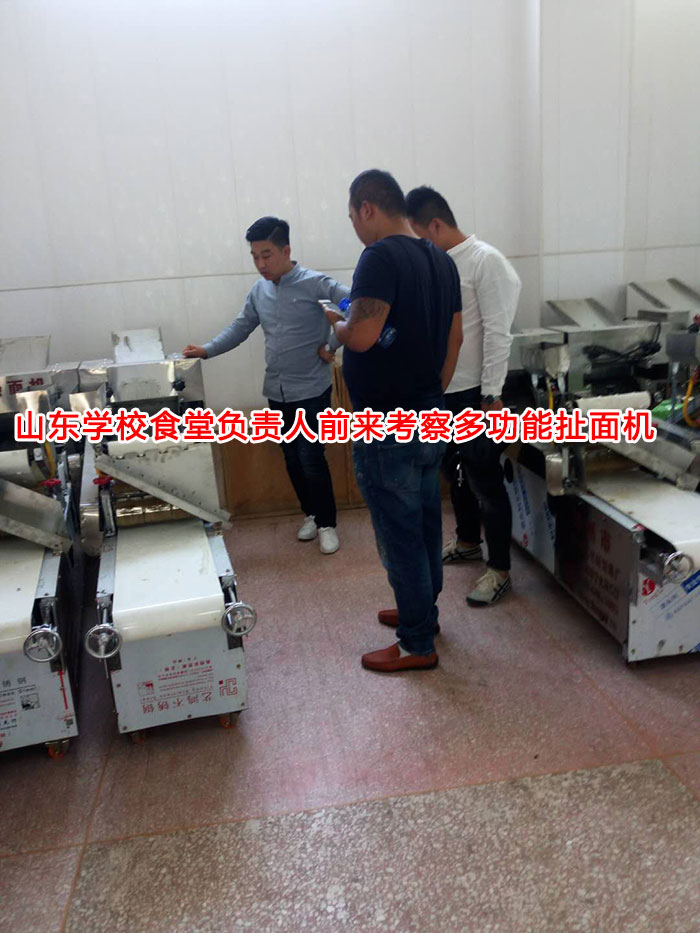 山東某學(xué)校食堂負(fù)責(zé)人前來考察一品鮮多功能成型機(jī)設(shè)備??蛻粼诘弥黄孵r多功能設(shè)備可以生產(chǎn)扯面,拉面,拉條,重慶小面,拽面,蔬菜面,鮮面條后,趁十一假期前來實(shí)地考察!