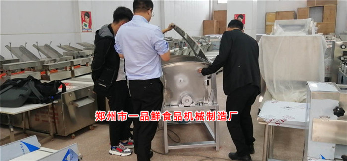 山西長治馬先生在當地開燴面館,由于味道好吃,生意越來越好,招了兩個做面師傅。但現在人工不好招,所以準備用機器來代替手工,也順帶供應其它的一些面館。經朋友介紹來到一品鮮總部進行考察,考察完成定購一套面館燴面機設備。并在直營店進行技術培訓學習,在廠調試設備。