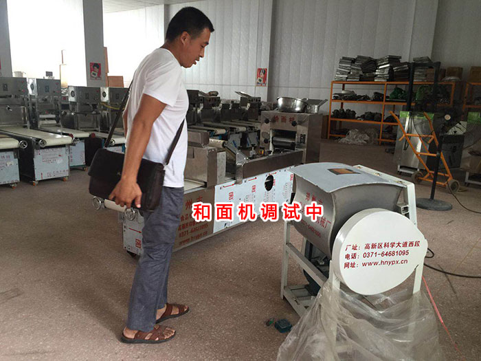 在網(wǎng)上了解到一品鮮后,而且離的非常近。就直接開車來到一品鮮總部考察,宋先生在面食方面是老行家,經(jīng)過接待人員現(xiàn)場生產(chǎn)演示,宋先生現(xiàn)場拉燴面后,就直接去看設(shè)備準(zhǔn)備定機器。 在設(shè)備展廳,宋先生定購一臺HMJ-3型燴面機和25公斤和面機,并當(dāng)場進行調(diào)試發(fā)貨。在此恭祝宋先生早日營業(yè),早日贏利。