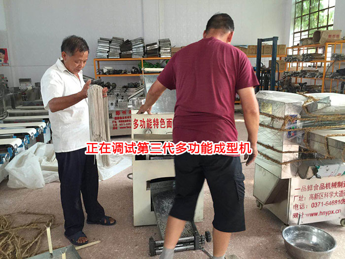 然后工作人員帶領(lǐng)凌大伯來到一品鮮工廠展廳,給凌大伯介紹了不同的設(shè)備型號及功能區(qū)別,凌大伯預(yù)計后期生產(chǎn)量不是很大,就根據(jù)建議定購了全套第三代多功能成型機(jī),并當(dāng)天下午在工廠進(jìn)行調(diào)試設(shè)備。