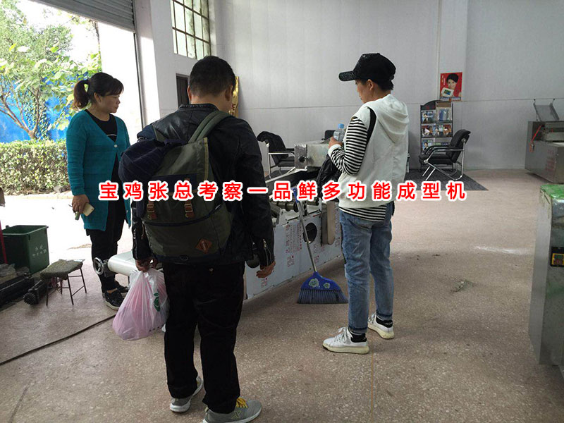經(jīng)過(guò)接待人員的詳細(xì)介紹,張總相中一品鮮第四代多功能成型機(jī)設(shè)備,一機(jī)多用,生產(chǎn)多種面食,功能強(qiáng)大,效率先進(jìn)。 張總當(dāng)?shù)赜刑厥獾拿媸?,一品鮮暫無(wú)成品刀具,所以張總與公司王總及研發(fā)工程師進(jìn)行長(zhǎng)時(shí)間的溝通,確定了特殊刀具的尺寸規(guī)格形狀等細(xì)節(jié)。 張總關(guān)注一品鮮也有很多年,現(xiàn)場(chǎng)考察一品鮮設(shè)備及生產(chǎn)的產(chǎn)品贊不絕口,也相信自己經(jīng)過(guò)貨比三家后選擇一品鮮肯定是明智的選擇。