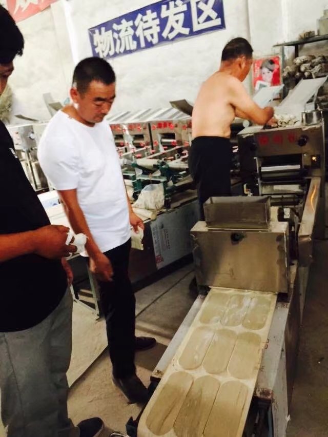 安陽(yáng)客戶武先生10年前購(gòu)買的一品鮮老款的燴面機(jī)做燴面批發(fā)生意,由于老設(shè)備效率太低,已經(jīng)無(wú)法滿足現(xiàn)在的生產(chǎn)需求。所以來到一品鮮更換新機(jī),武先生定購(gòu)HMj-3型雙輥雙刀燴面機(jī),當(dāng)天調(diào)試發(fā)走。祝武先生早日收到貨,早日生產(chǎn)經(jīng)營(yíng)。